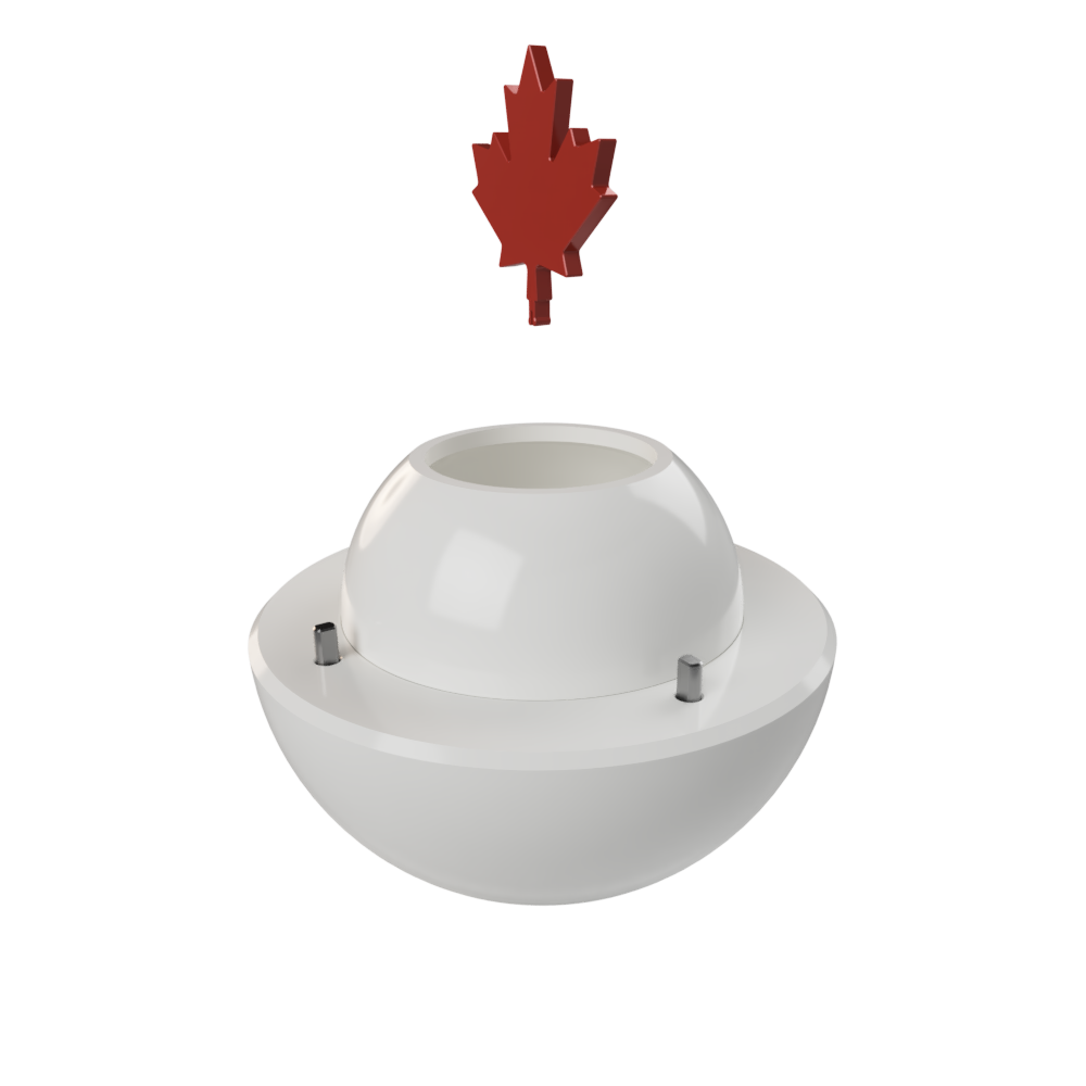 It is designed to have both halves and bands glued together with the red maple leaf being a removable pin.